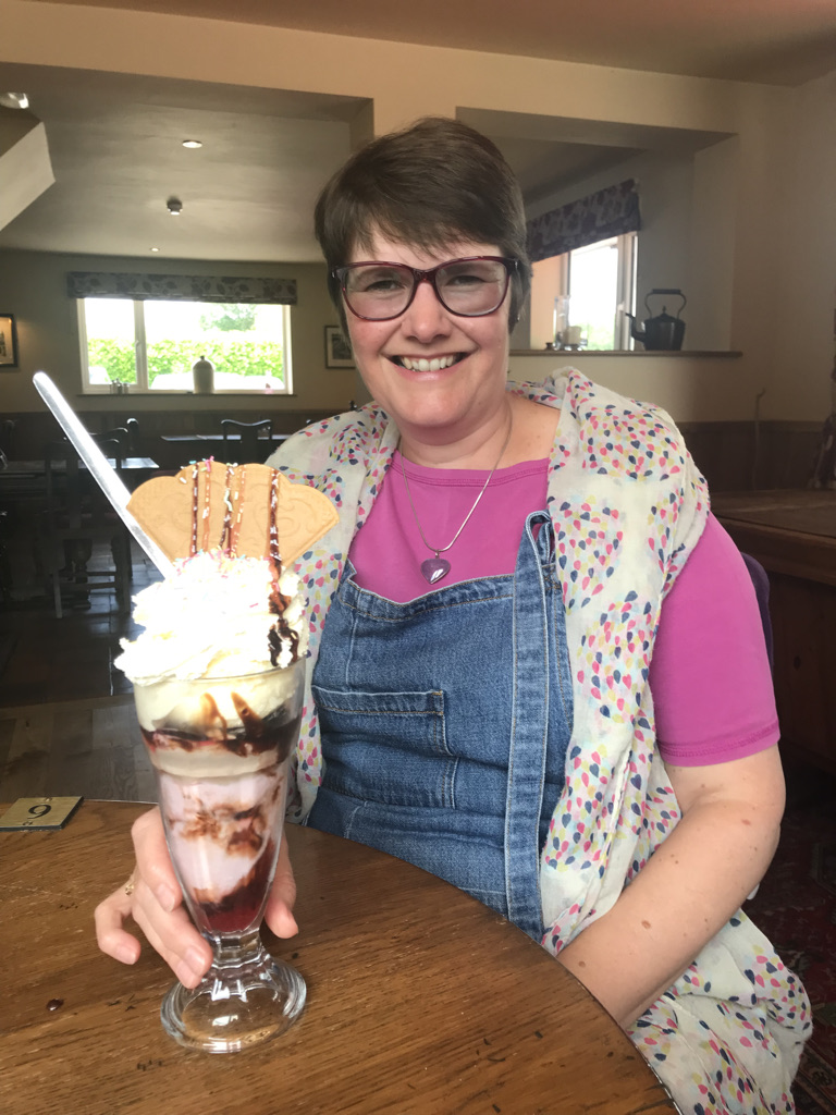 On Saturday, following a recommendation we cruised in the rain, with another 5 locks to the Wharf inn at Goldstone for lunch, including the Ice cream Sundae (see photos below) the lunch was worth cruising in the rain!